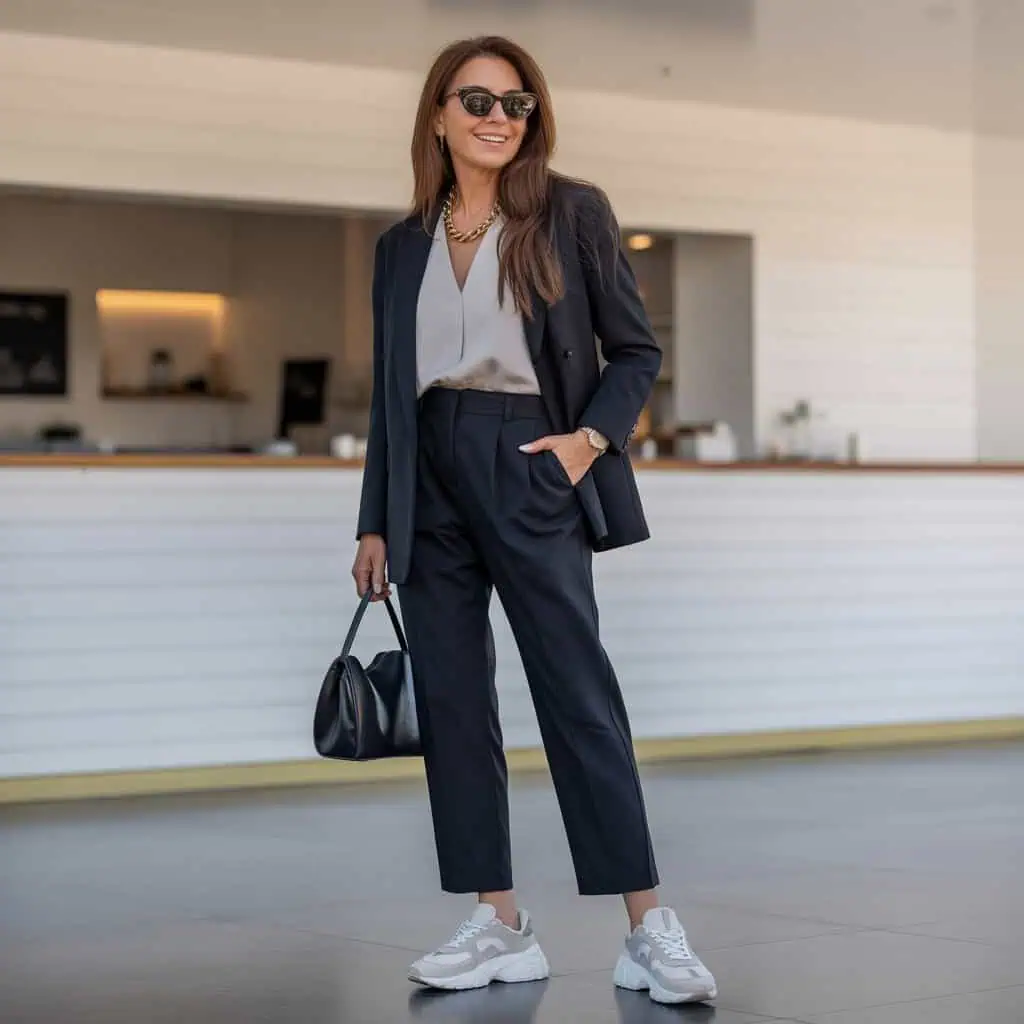 Chunky dad sneakers certainly resonate with current streetwear trends, but this style can overwhelm the frame, especially when combined with formal wear like tailored trousers. This mix often panders to a vague style ethos that might dilute your elegance zone. A more refined sneaker or a classic leather shoe can retain the comfort while enhancing your outfit’s sophistication. Opt for clean lines or structured silhouettes to maintain that chic, polished look. The key is to leverage comfort without compromising on style, allowing you to walk confidently in any setting.
