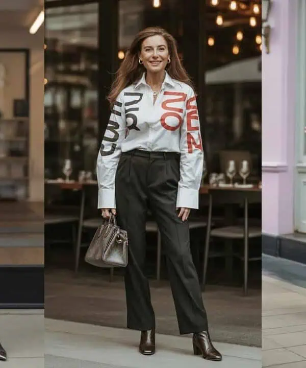 Neon colors can be a fun way to express personality, but they often overwhelm the frame rather than enhance it, especially for those over 60. Instead of diving into bright yellows or greens, opt for more muted shades that complement your skin tone. A burgundy ballet flat adds a touch of warmth without competing with vibrant hues, while classic black wide-leg trousers provide an elegant silhouette that balances out your proportions. Aim for a cleaner approach with accessories — think delicate jewelry and structured bags — which keep the overall look sophisticated and age-appropriate, allowing your natural beauty to shine instead of fading into the background.