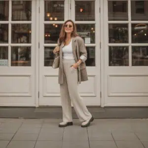 High-neck, fitted turtlenecks may evoke classic elegance, but they can often be unflattering for those over 60. Instead, consider a soft, lightweight turtleneck that provides a gentle hug without constricting your neck. Pairing this with loose-fitting, flowing trousers not only softens the overall look but also provides breathing room. Choosing a lively color like soft cherry red can brighten your complexion and add warmth to your outfit. By accessorizing with stylish loafers and a practical tote bag, you bring together a chic yet comfortable style that radiates confidence, making you feel fabulous in every way.