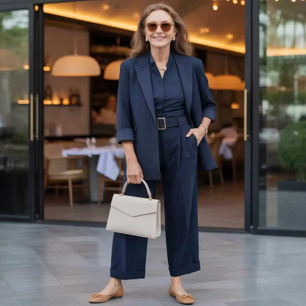 Incorporating subtle patterns is a brilliant way to keep a monochrome outfit engaging. A navy suit featuring a delicate herringbone pattern can add an unexpected twist while maintaining a cohesive color palette. This technique allows you to showcase your personality without overwhelming the look. When paired with complementary pieces—like a fitted blouse and structured handbag—you create a sophisticated aesthetic that’s perfectly tailored for any occasion. These understated patterns act as visual breaks, making each piece feel like part of an effortless ensemble built for confidence and style.