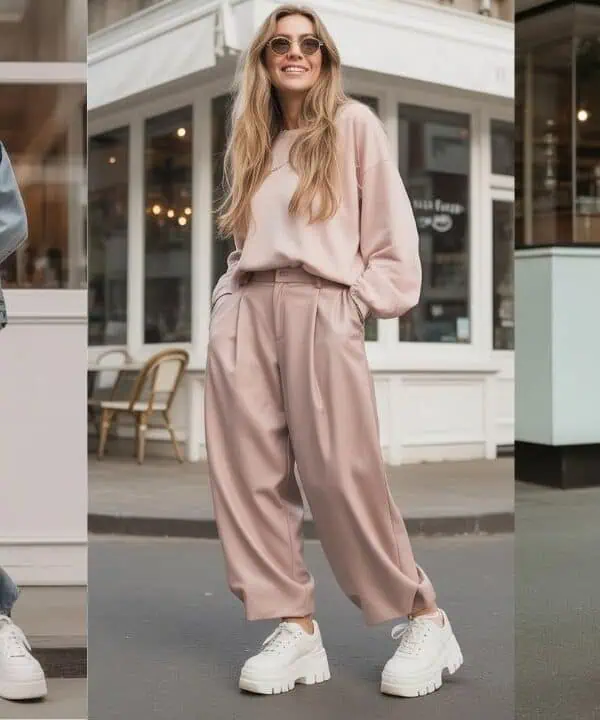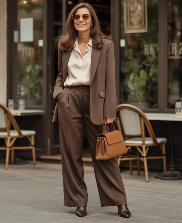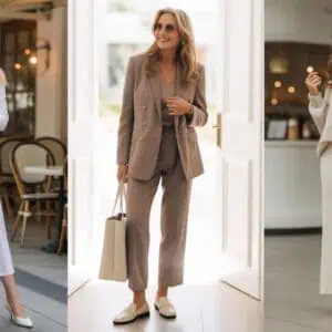 A linen blazer paired with wide-leg trousers creates a refined yet effortless look that’s perfect for any occasion. The lightweight structure of linen breathes easily, making it ideal for warmer days while adding a sophisticated touch. Wide-leg trousers not only provide comfort but also elongate the legs, striking a chic silhouette. Pairing this ensemble with pointed flats enhances femininity without sacrificing comfort. Opting for a classic color palette, like navy and white, keeps the outfit timeless, while accessories like a stylish tote and oversized sunglasses add a playful flair, making you feel both stylish and at ease.
