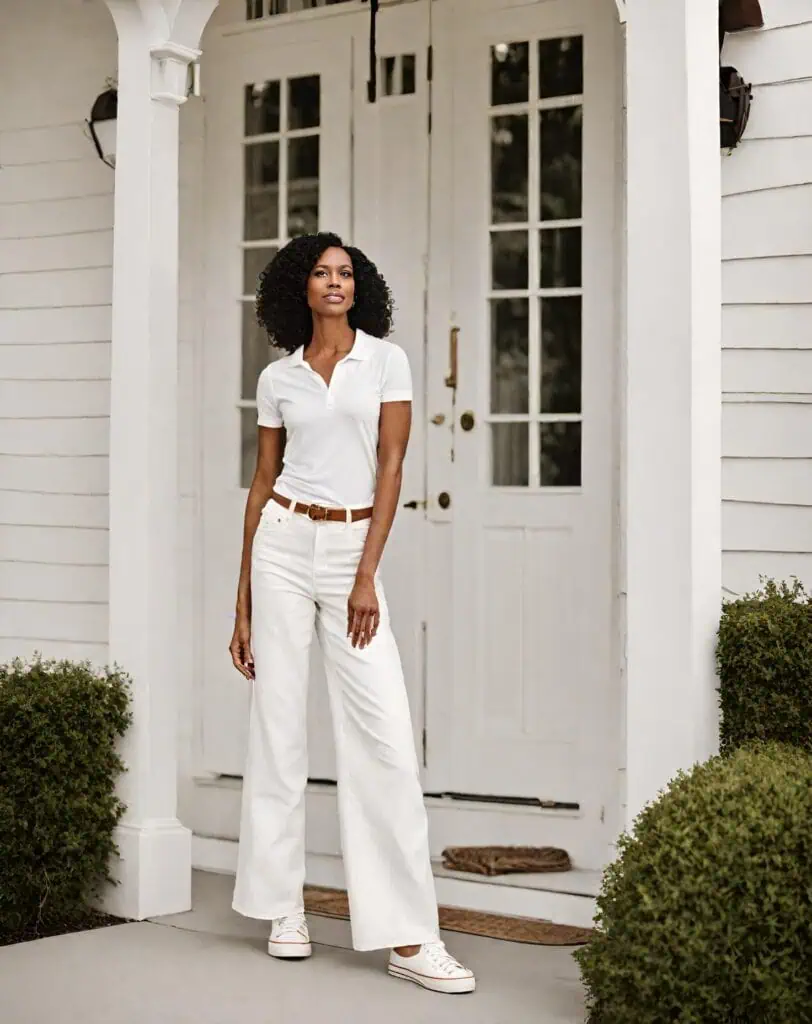 White Polo Shirt and White Denim Jeans