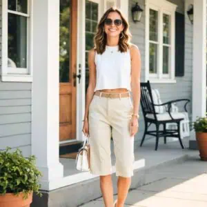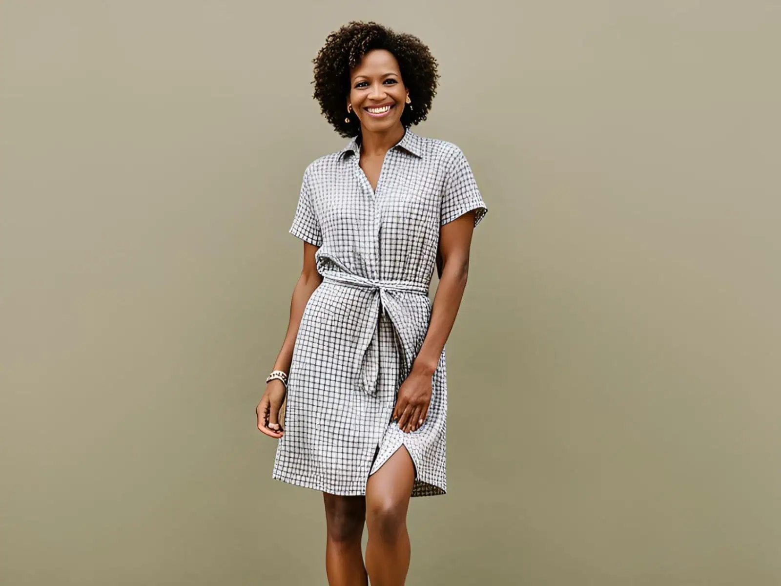If you’re into outfits that celebrate sleek simplicity, go for a sleeveless khaki dress. Editors love its minimalist design, which allows for endless accessorizing possibilities, the neutral khaki hue is flattering, and the sleeveless cut highlights toned arms and shoulders.