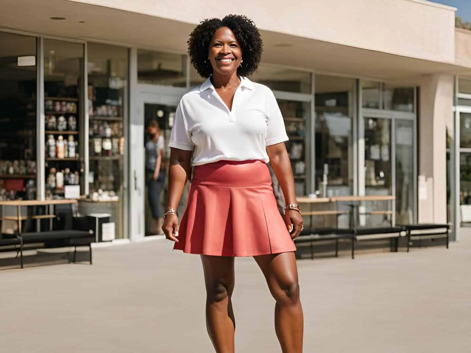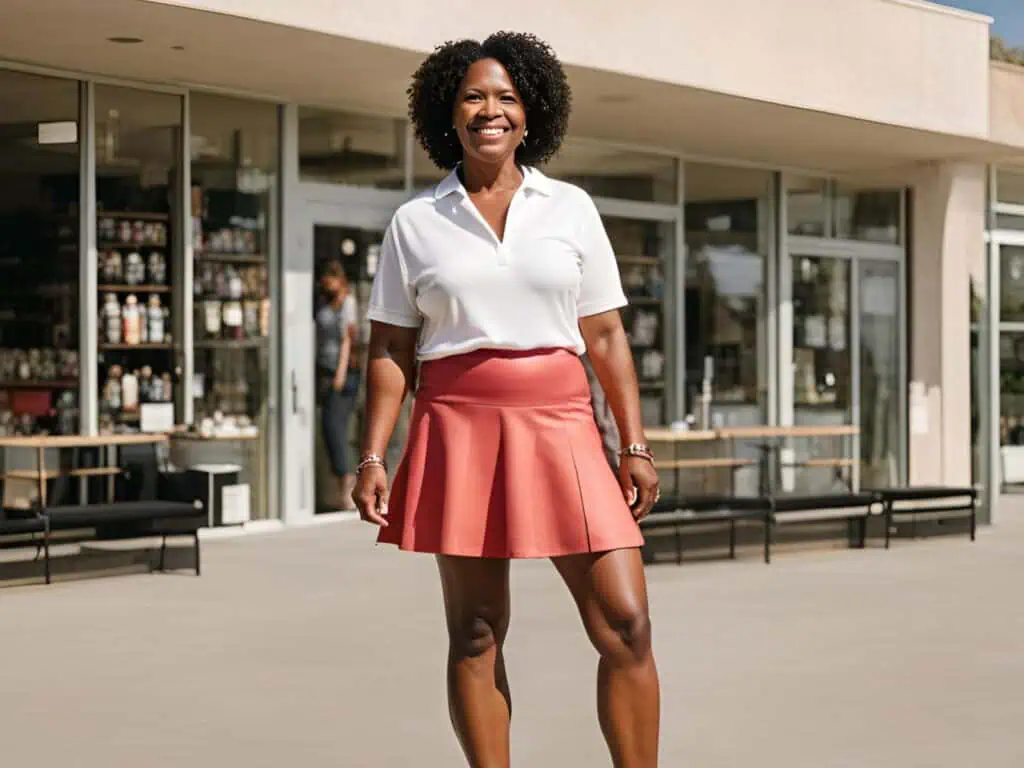 Lastly, the dynamic duo of a white polo shirt and coral tennis skirt captures the essence of summer vibrancy. Our experts are smitten with the way the bright coral hue contrasts with the crisp white, creating a visually striking ensemble.