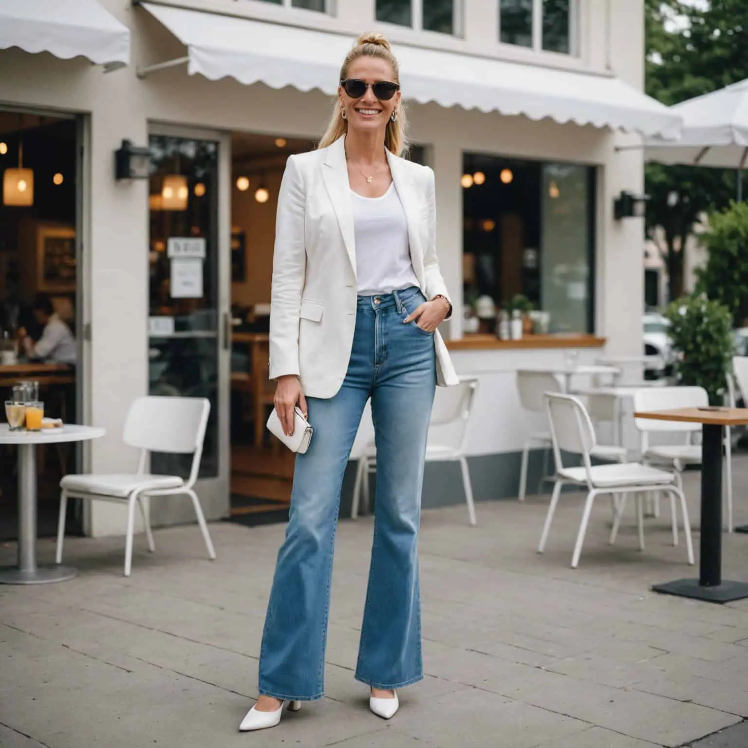 Combining a blazer with flare jeans is a masterstroke of style, and we just love the gorgeous contrast of structured sophistication and casual cool. The blazer adds a level of formality, while the flare jeans elongate the legs and balance the silhouette.