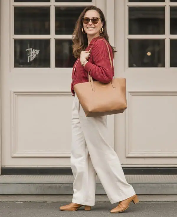 No doubt, a long-sleeve knit top with stripes is both cozy and flattering, perfect for cooler days. The knit material provides warmth, the stripes add a touch of style, and the top can enhance your natural curves, making you appear slimmer and more defined.