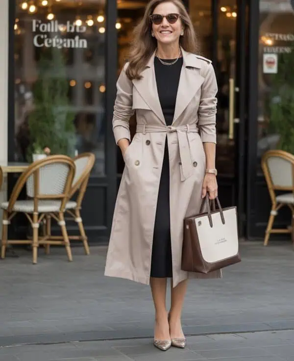 Flowy linen shirts and wide-leg trousers are a match made in heaven for those seeking both comfort and chicness. Linen’s breathable fabric feels luxurious against the skin, making it ideal for warmer days. Styling a button-down shirt with wide-leg trousers creates a flattering silhouette that celebrates your shape without clinging. The light beige hue radiates a soft elegance, while the tan leather belt provides just enough definition to accentuate the waist. Accessorizing with a woven clutch and pearl earrings lends a touch of sophistication, while kitten heels add a bit of height, ensuring you feel both relaxed and put together.