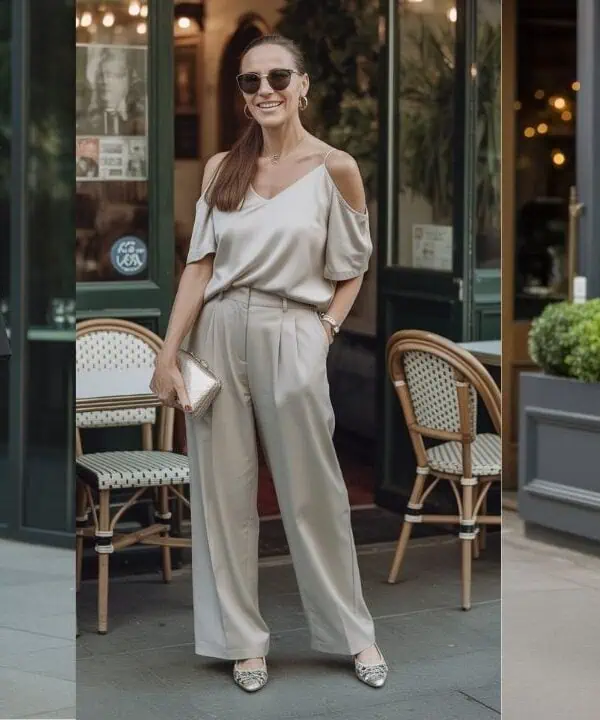 Here’s another epitome of elegant simplicity – a chiffon flutter sleeve blouse. The sheer, lightweight material of chiffon adds a graceful, feminine touch, while the flutter sleeves provide a playful yet sophisticated silhouette.