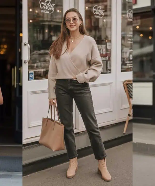 For those who appreciate the classics with a contemporary twist, a black button shirt with crop straight-leg pants is the way to go. The timeless black shirt offers a versatile base that can be dressed up or down, while the cropped length highlights your ankles, adding playfulness to the otherwise classic look.