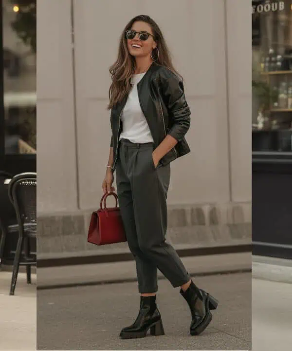 Indeed, black leather ankle boots are an anchor of French style, combining practicality with undeniable cool. Their sleek design adds a polished edge to pants, while the subtle heel elevates your posture for a confident stride.