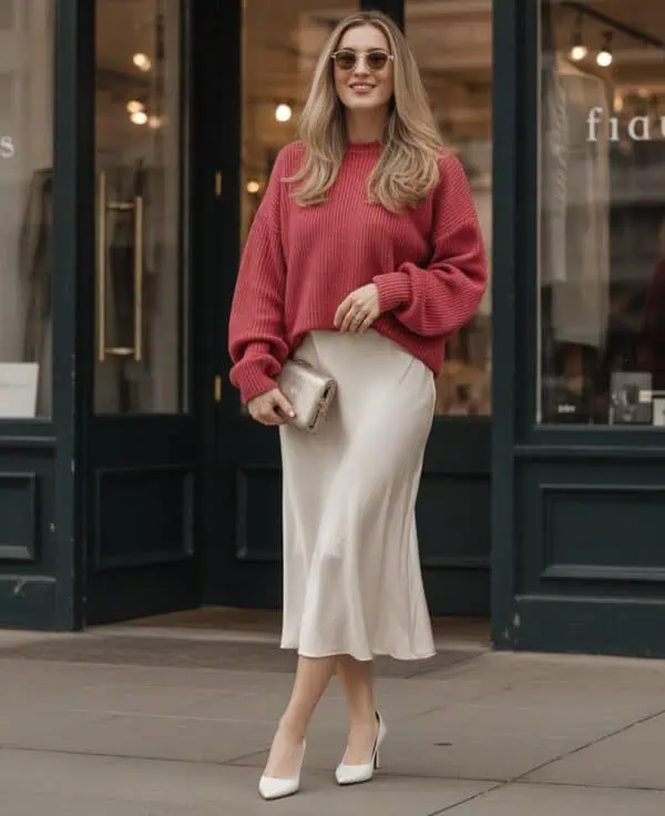 The natural fibers of the Merino wool skirt provide insulation while still being lightweight, offering warmth without adding bulk. The skirt’s sleek, fitted shape flatters your curves, and its midi length adds sophistication while keeping your legs covered.