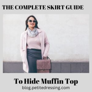 The flared skirt has moderate volume, compared with a ball gown style, so it will not overwhelm your frame. Look for an elevated waistline (i.e. above your natural waistline) so that your legs will look longer.