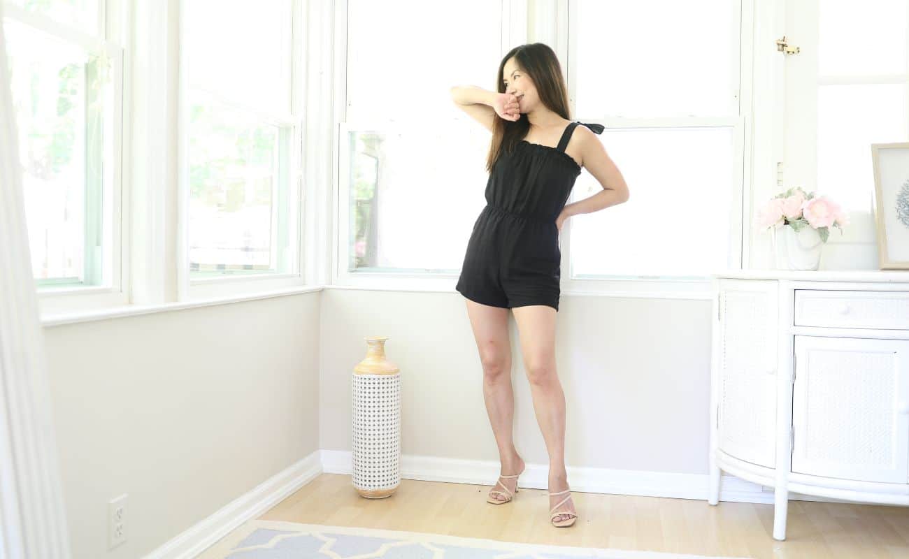 Rompers usually feature a waist elastic or waist tie that separates the top part from the bottom and when you have a short torso, the waistband doesn’t really land where it should be. Since the top part tends to be a bit longer than the actual torso, then the waist elastic or waist tie falls by the hip bone for ladies with short torsos.