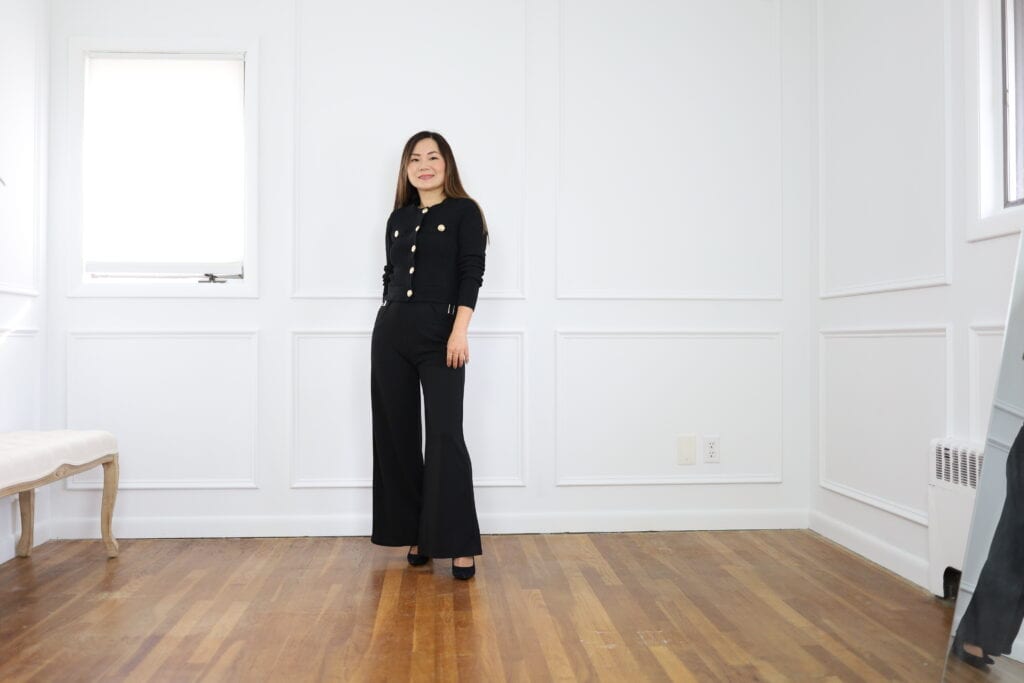 One of the most flattering ways to dress a woman with a short torso is to wear the same (or similar) color for your top and bottom, in other words, monochromatic dressing.