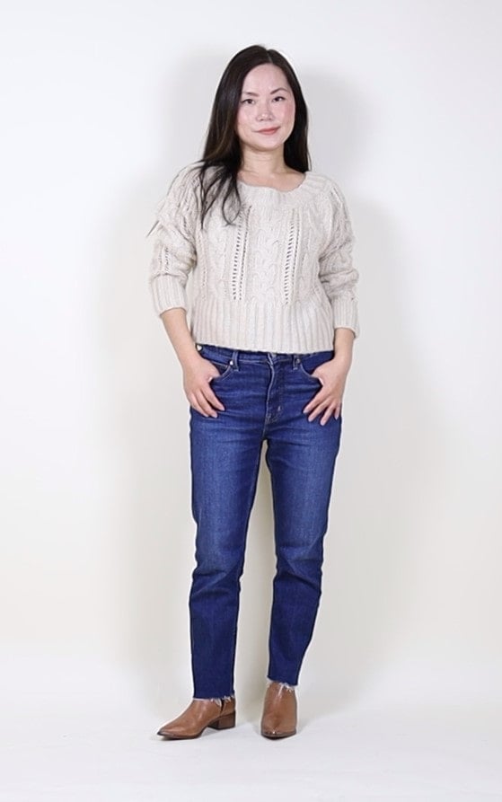 Hello, I am 5’2 with a 26+” inseam and I always knew I had long legs for my height. I appreciate this site and all your tips, but I have to say that I am not a fan of mid-rise pants or untucked tops: I’ve always had better luck with low cut pants and loosely tucked in tops. I am definitely an inverted triangle, so perhaps that has something to do with it. Belts of any kind, of course, are never worn at my natural waist.