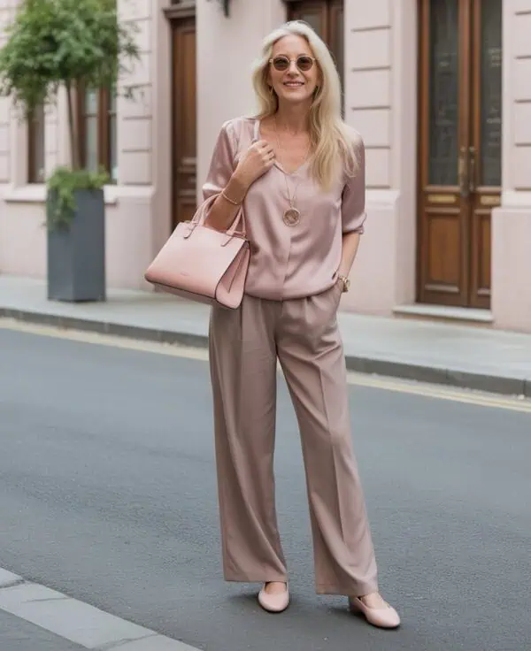 You can also try to go monochromatic with your look by wearing a matching top that also comes in the same beige color! This will give you that minimalist look that’s sure to show off your elegant fashion taste.