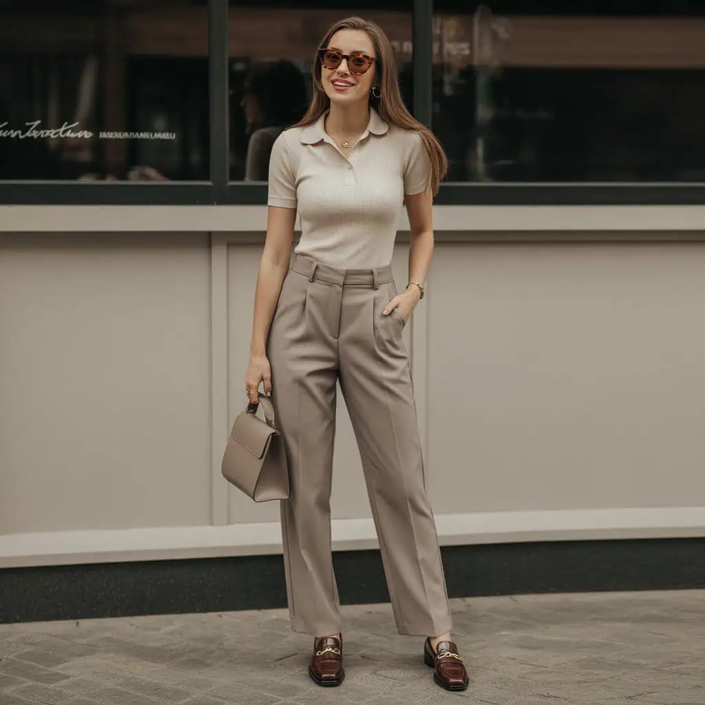 Polo knits have made a stylish comeback, and when layered with tailored trousers, they embody an effortless chic aesthetic. This outfit plays with textures and structure, bringing an air of polished nonchalance to your look. The polo’s collar adds a sporty touch that balances nicely with the refined silhouette of the trousers, which should be tailored to create a sleek profile. To add an element of surprise, try a pair of high-waisted trousers that elongate your legs while maintaining comfort. Elevate your outfit with loafers or low-top sneakers for a smart-casual vibe that radiates confidence and style without a hitch.