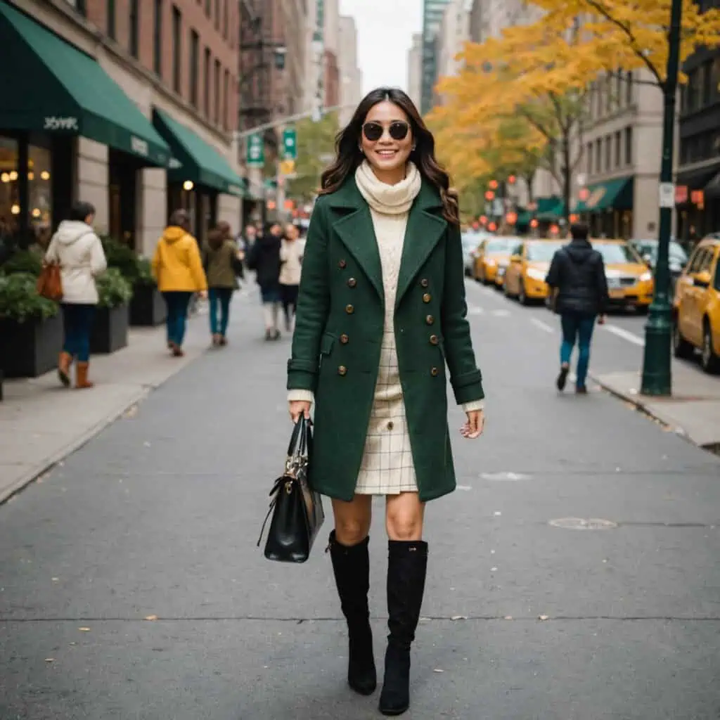 Mint green might not be the first color you think of for fall, but that’s exactly why chic New Yorkers love it. A double-breasted mint jacket is a fresh, unexpected twist on classic outerwear – the structured, double-breasted design adds polish, while the mint color feels youthful.
