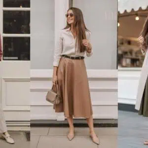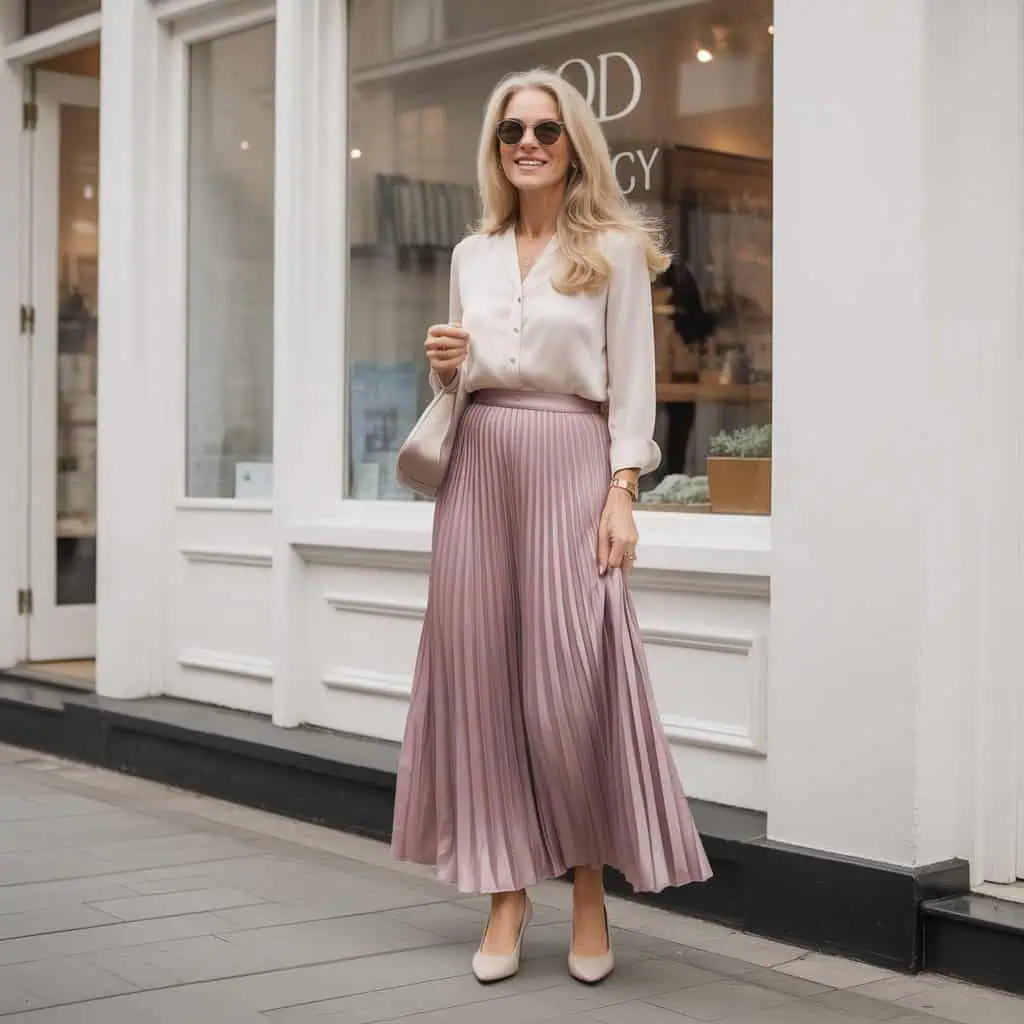 8. Pleated Maxi Skirt with Fitted Buttoned Blouse