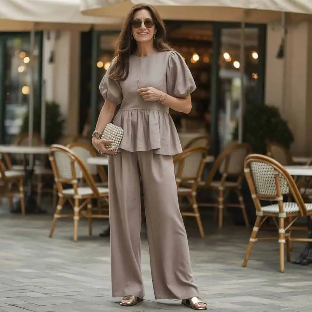 6. Linen-Blend Wide-Leg Pants with Matching Peplum Top