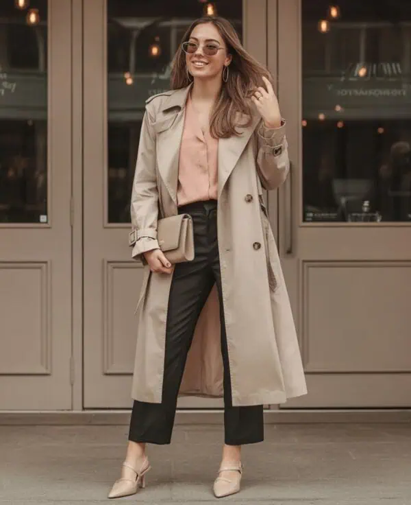 The classic trench coat is a wardrobe powerhouse—it skims over curves and draws the eye downward for a refined, statuesque effect. Beyond its chic appeal, it’s also a true practical hero: lightweight enough to layer over cozy knits and flexible enough to cinch tighter at the waist for added warmth and flattery.