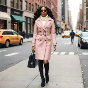 The clean lines and dark hue of a belted black trench coat create a slimming effect, while the belted waist enhances your curves in all the best spots. Such a coat is perfect for layering over your favorite cold weather outfits, and the classic trench design ensures you’ll look effortlessly chic.