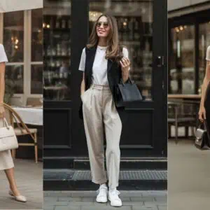 Kitten heels are making a delightful comeback, effortlessly blending style with comfort. Picture an ensemble that brings sophistication without sacrificing ease. A chic tailored blazer layered over a fitted top adds a streamlined silhouette, while high-waisted trousers elongate the legs. The graceful height of kitten heels provides a subtle lift, perfect for those long days when you want to look polished but feel relaxed. Accessories like oversized sunglasses and a structured handbag complete the look, infusing it with a modern flair. This type of outfit works beautifully for both professional settings and casual outings, allowing for versatility without the strain of traditional pumps.