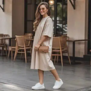 A large chunky pendant can be a showstopper when styled appropriately, but it’s crucial to ensure it doesn’t steal the spotlight from your natural beauty. In a soft pink V-neck midi dress, the chunky pendant serves to elevate the overall elegance of your outfit. The V-neck design complements the pendant by framing your collarbones beautifully, drawing attention upward rather than feeling cumbersome. Cream-colored mules continue the chic, sophisticated flow of your ensemble, allowing the pendant to shimmer without overpowering your gentle look. When accessorizing with bold items, let your lighting smile do the heavy lifting—it balances the outfit and showcases your confidence!