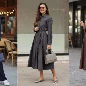 While black is often the first color people think of for monochrome dressing, the column effect works with many shades. Cream, beige, grey, navy, and even soft pastels can all create the same elongating result. The key is to stay within a consistent color family so the eye does not detect strong breaks. Lighter tones can feel softer and more modern, while darker shades can create a more defined and structured look. Choosing the right color often depends on personal style and the setting.