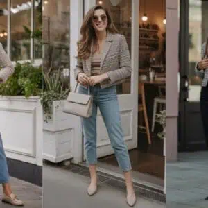 For a fresh, modern take on casual elegance, nothing beats a cozy pointelle sweater paired with white jeans. The relaxed fit of the jeans harmonizes with the lightweight knit, creating a laid-back ensemble that’s elevated yet super comfortable. By opting for a soft lavender shade, you create a subtle contrast that brings a youthful glow to the outfit. Tucking the sweater in keeps the look sharp and streamlined, perfect for showcasing your favorite loafers. Add in chic sunglasses and a beige bag to give the outfit a sophisticated touch, making it ideal for everything from running errands to lunch with friends.