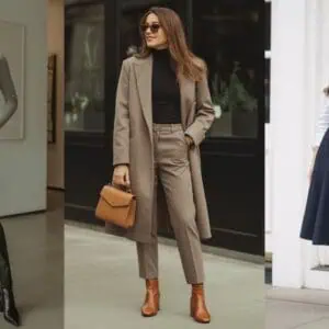 The allure of an all-black ensemble lies in its timeless elegance and versatility, making it an effortless choice for looking refined. A fitted turtleneck effortlessly flatters your figure while tucking it into tailored trousers creates an elongated line, ensuring you look put-together. Layering with an oversized trench coat adds depth to the outfit and a hint of drama, perfect for making a statement. Black leather ankle boots with a square toe provide a modern edge, while structured accessories in the same color tie the outfit together beautifully. Minimal silver jewelry adds a subtle sparkle without detracting from the sleek monochrome vibe, ensuring you exude confidence on any urban adventure.