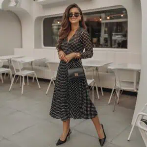 Choosing a jacket with tonal “invisible” buttons is a brilliant way to create a sleek, elongated silhouette that flatters your figure. The subtlety of these buttons enhances the clean lines of your outfit, maintaining a cohesive look from head to toe. This technique not only draws the eye downward, promoting a sense of height and elegance, but it also keeps the focus on your overall ensemble rather than interrupting the flow with contrasting details. Pairing the cream jacket with a light beige top and tailored trousers works harmoniously, embracing a sophisticated monochromatic scheme that radiates sophistication and ease. When styled with oversized sunglasses and minimal gold jewelry, this look transitions beautifully from day to night with an effortless charm.