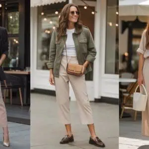 Opting for tailored stretch trousers and a matching blazer is a foolproof way to exude professionalism with a side of comfort. The stretch fabric moves with you, ensuring all-day ease while maintaining a sleek appearance. Tucking in your top helps to create a streamlined silhouette, accentuating your figure and adding a touch of sophistication. Complementing the look with pointed-toe heels elongates the legs, while modern accessories like minimalist sunglasses and a structured handbag tie the ensemble together seamlessly. This outfit is all about versatility—perfect for transitioning from day to night and suitable for various occasions. With the right pieces, you can effortlessly capture that polished business-chic vibe.