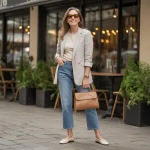 This monochromatic ensemble works its magic by creating a seamless silhouette that elongates your frame. When you opt for a fitted camel blazer paired with tailored camel trousers, youāre not only embracing a chic, upscale look but also investing in a style that draws the eye vertically. The soft, warm tones of camel add a touch of sophistication, while the tailored fit accentuates your shape without overwhelming your figure. The key here is to ensure the blazer is fitted and the trousers are flattering; this combination exudes confidence and polish. Pairing it with trendy white espadrilles keeps the outfit fresh and adds a dash of casual flair, ensuring that youāre ready for anything with an effortlessly elevated vibe.