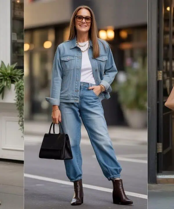 The monochrome knit set is your go-to for making a luxe impression with minimal effort. Choosing shades within the same color family not only streamlines your look but also highlights an innate sense of style. The wide-leg pants paired with a neatly tucked sweater create an elongated form that flatters every body type. Texture adds an element of interest, ensuring you don’t blend into the background. Completing the outfit with block-heeled boots offers both style and comfort, while oversized sunglasses add a touch of glam. A structured handbag serves as the perfect finishing touch, effortlessly merging function with high fashion.
