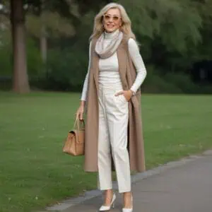 A scarf adds instant sophistication, even to the simplest outfit. Toss one over a plain sweater, and suddenly your look feels intentional and complete. The key is drape soft fabrics like wool, silk-blend, or cashmere move beautifully and frame the face. A light twist or loop can create texture without bulk. For mature women, a scarf also adds warmth around areas where skin is thinner, like the neck and chest. Choose neutral shades like camel, gray, or ivory for timeless appeal, or let a jewel tone brighten winter neutrals. It’s the easiest way to look pulled-together in seconds.