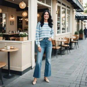 Another perennial favorite for fall is a striped sweater – the lines can create the illusion of a broader chest or an elongated frame, adding balance to your overall silhouette. They bring a touch of nautical flair to your fall wardrobe while keeping you cozy.