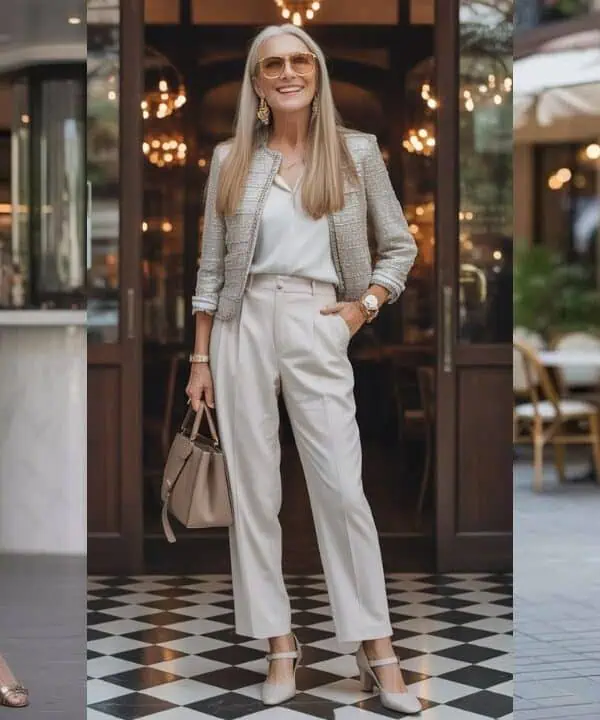 Opting for a linen two-piece set is a brilliant choice for travel, especially for those over 50. The breathable fabric allows for maximum comfort, perfect for exploring or lounging. The loose-fit top and elastic-waisted culottes create a relaxed yet stylish silhouette, enabling ease of movement without sacrificing flair. White sneakers add a modern twist, offering an effortless coolness and ensuring you’re ready for any impromptu walk. Plus, the neutral palette allows for versatile accessorizing—think statement jewelry or a patterned scarf for an added touch of personality!