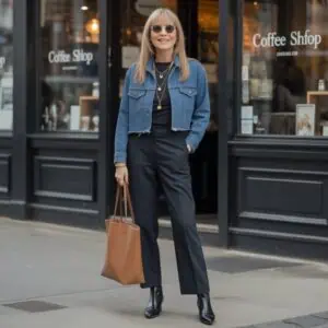 Opting for tailored trousers in a monochrome ensemble is an innovative way to embrace chic sophistication, especially suited for women over 60. The fitted blazer paired with these trousers defines the waist and provides structure, crafting a streamlined silhouette that flatters. This beige tonal look not only emphasizes a timeless elegance but also creates a refreshing palette that brightens winter days. Nude loafers ground the outfit with comfort while still keeping it polished. Accessorizing with sunglasses introduces a chic flair, making the outfit perfect for both day and evening wear. Tailored trousers are not just versatile; they are a celebration of confidence and style that transcend age.