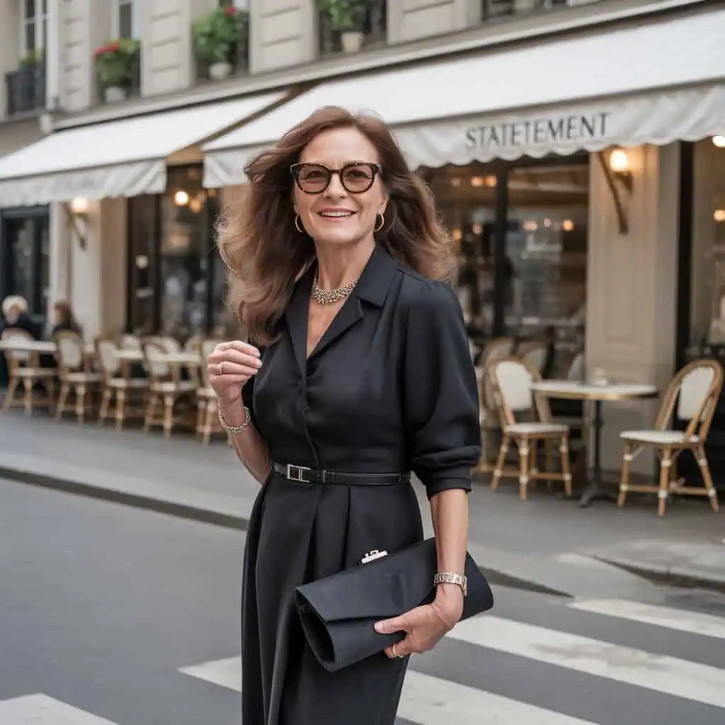 The little black dress is a timeless classic and works particularly well for women over 60 because of its versatility and ability to flatter any silhouette. By choosing a dress that gently cinches at the waist, the outfit accentuates natural curves, while still providing comfort and elegance. Pairing it with eye-catching statement jewelry—like bold pearl earrings and a coordinating bracelet—adds personality and a hint of glamour to the look. The right accessories elevate the simplicity of the dress, turning it into a sophisticated ensemble perfect for dinner. Slingback heels maintain comfort without sacrificing style, while a sleek clutch offers a seamless touch to complete the outfit.