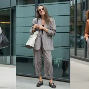 Pairing an oversized button-down with a leather skirt embodies the perfect blend of laid-back elegance and effortless chic. This combination is not just about comfort; it showcases how the structure of the shirt elegantly contrasts with the edgy vibe of the leather. The classic loafers anchor the outfit, providing a sophisticated touch that transitions smoothly from day to night. Adding a structured tote elevates the look, making it ideal for everything from brunch to an impromptu meeting. The accessories, like dainty gold hoops, offer a subtle hint of glamour, ensuring you’re polished without trying too hard.