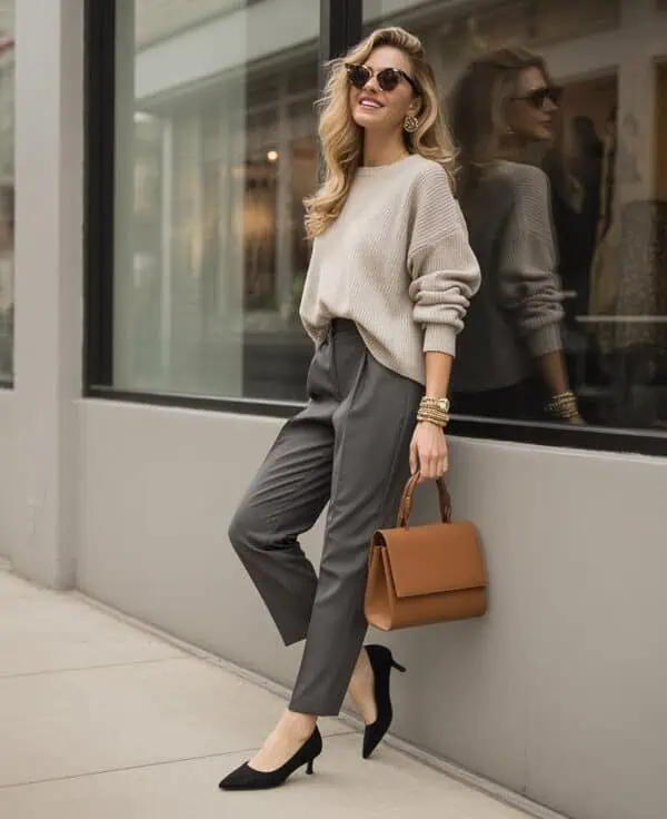 This type of fabric can look both casual and dressy depending on what you style the pants with. Linen is typically cream or tan, which will automatically elevate your outfit. Lighter neutral tones look extremely classy on women.